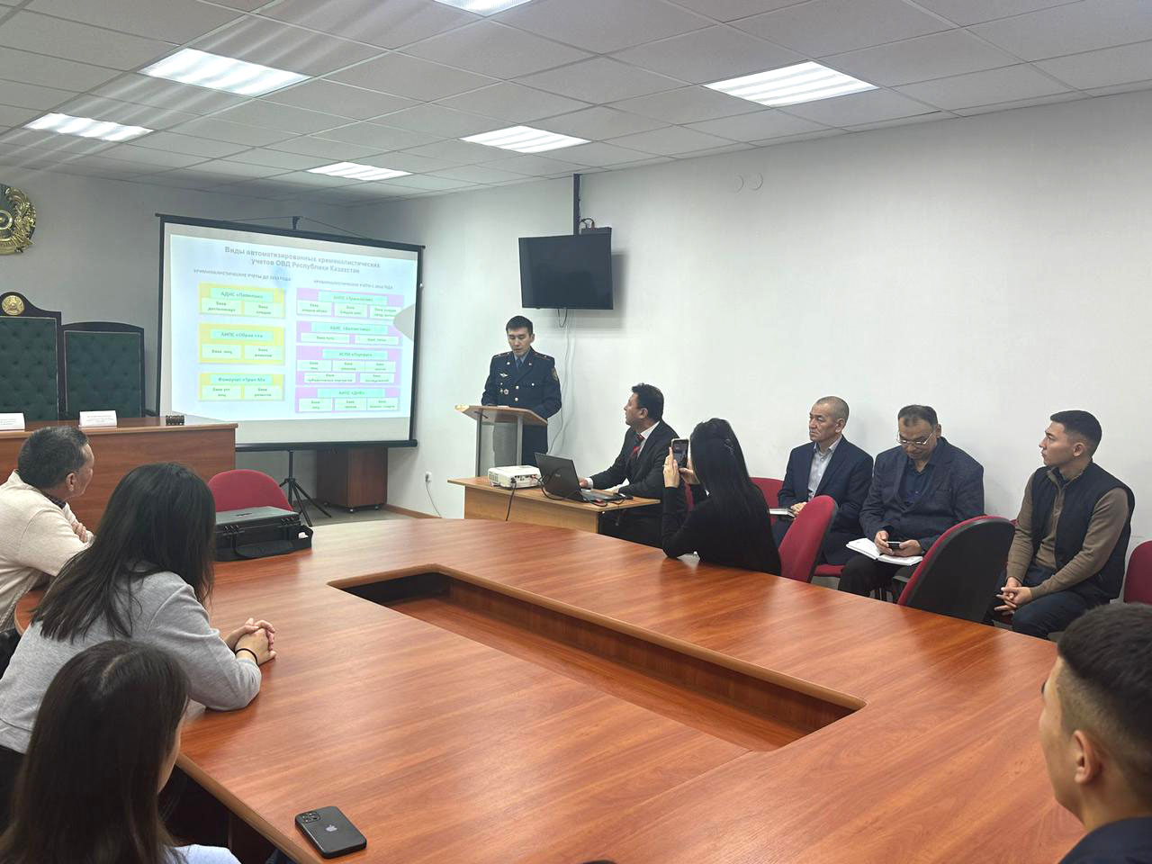 «Іздестіру-танымдық қызметті ақпараттық қамтамасыз етудің техникалық-криминалистикалық құралдары» тақырыбында дәріс 6В04202 Құқықтану, 6В04203 көлікті пайдалануды тасымалдауды және қозғалысты құқықтық реттеу және 6В04203 сот-прокурорлық қызмет білім беру бағдарламалары бойынша білім алушылар үшін өткізілді.