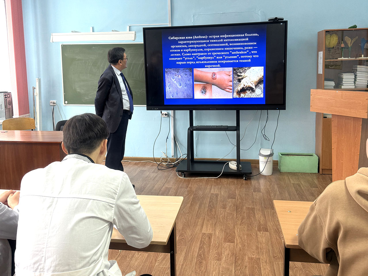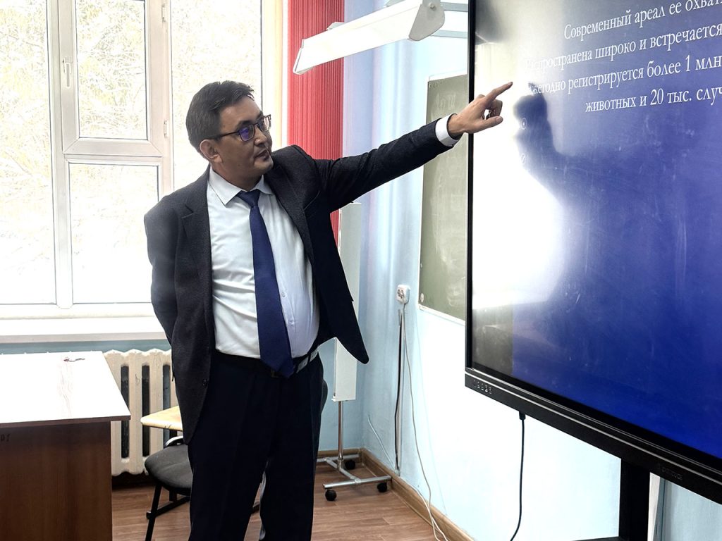 Ветеринария және техносфералық қауіпсіздік кафедрасында «Батыс Қазақстан облысының ветеринария басқармасы» мемлекеттік мекемесінің талдау, болжау, ветеринариялық есепке алу және лицензиялау бөлімінің басшысы Берик Хуанович Иралиевпен Ветеринария және Ветеринарлық медицина ББ студенттері мен магистранттарының кездесуі өтті. Ол кафедраға оқытушы ретінде бірінші рет шақырылып отырған жоқ. Бұл жолы ол «Ауылшаруашылық жануарларының сібір жарасы» тақырыбында дәріс оқыды. Дәріс өте қызықты, танымдық болды. Оқушылар қызығушылықпен тыңдап, көптеген сұрақтар қойды. Қатысушылар ауру, оның диагностикасы, емдеу және алдын алу әдістері туралы пайдалы білім алды. Дәріс осы ауру бойынша білім алушылардың білім деңгейін арттыруға ықпал етті және оларды ветеринарлық практикадағы міндеттерді неғұрлым сауатты және тиімді шешуге дайындады. Берік Хуанұлына зор алғысымызды білдіреміз және жұмыста табыс тілейміз.