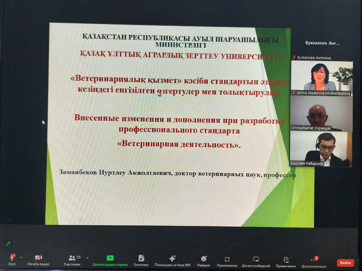 Агроөнеркәсіптік кешен (АӨК) үшін кадрларды даярлаудың өзекті мәселелеріне арналған онлайн семинарға ветеринария және техносфера қауіпсіздігі кафедрасының оқытушылары және 2 курс магистранты А.И. Байман қатысты. Онлайн семинарды кәсіби біліктілік жөніндегі ұлттық уәкілетті орган «Еңбек ресурстарын дамыту орталығы» АҚ және Қазақстан Республикасы Ғылым және жоғары білім министрлігінің Жоғары білімді дамыту ұлттық орталығы ұйымдастырған. Қазақстан Республикасының ветеринария қызметіне енгізілген өзгерістер мен толықтырулар мәселелері туралы Білім беру бағдарламасы және кәсіптік стандарт бөлімі бойынша ветеринария ғылымдарының докторы, Қазақ ұлттық ветеринария кафедрасының профессоры Аграрлық зерттеу университеті Заманбеков Нұртілеу Ақжолтайұлы баяндама жасады. Баяндамашы 2023 жылы әзірленген «Ветеринариялық қызмет» жаңа кәсіби стандартында Қазақстан Республикасында ветеринариялық қызмет саласындағы 15 мамандық атауы бар екенін хабарлады. Кәсіби стандарттың ескертуінде «Ветеринариялық санитар» және «Ветеринариялық фельдшер» сияқты жаңа мамандықтар көрсетілген. Ветеринариялық қызмет саласындағы негізгі және негізгі кәсіп жаңа стандартта «Ветеринар» мамандығының орнына «Ветеринарлық дәрігер» атауы берілді. Сондай-ақ баяндамашы «Ветеринариялық қызмет» жаңа кәсіби стандарты әзірленгенін және Қазақстан Республикасының бекітілген нормативтік құқықтық актілері мен құжаттары негізінде бекітілетінін атап өтті.