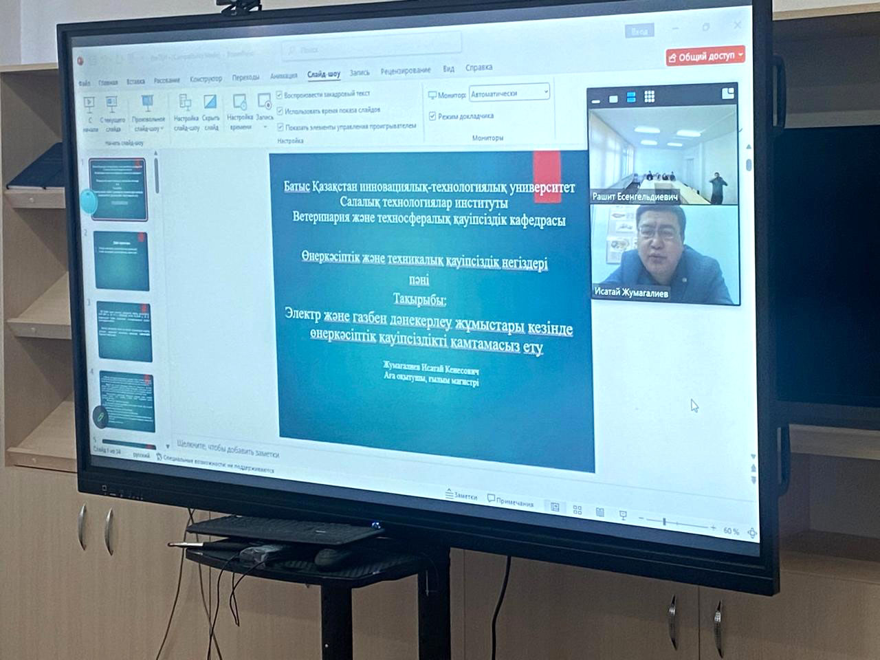 Өз кезегінде, Ш. Уәлиханов атындағы Көкшетау университетінің тау-кен дела, құрылыс және экология кафедрасының қауымдастырылған профессоры, т.ғ.к., Нарбаев Калижан Ануарбекович БҚИТУ 2 курс білім алушыларына «Өнеркәсіптік және техникалық қауіпсіздік негіздері» пәні бойынша дәріс оқиды.