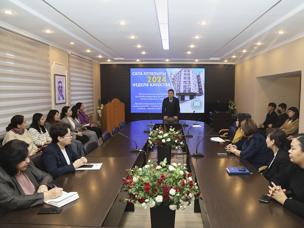 Дүниежүзілік Сапа апталығы аясында 2024 жылдың 11-15 қараша аралығында университетте оқытушылардың кәсіби шеберлігін жетілдіру мақсатында «Педагогикалық шеберлікті қалыптастырудың негізі – кәсіби педагогикалық іс әрекет» тақырыбындағы «Сапа апталығы – 2024» өтті.