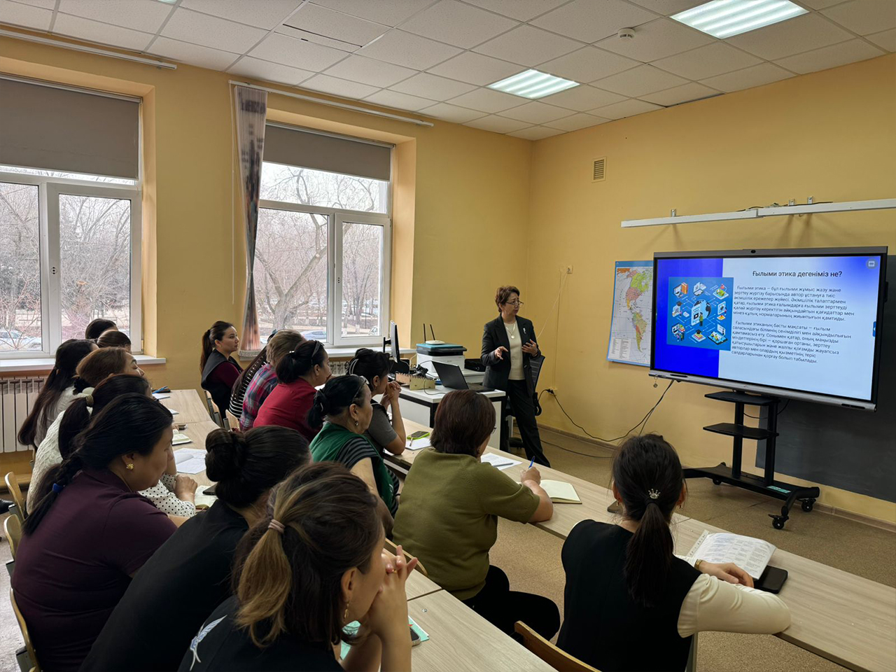 2026 жылдың 26-наурызында Батыс Қазақстан инновациялық-технологиялық университетінің Дене мәдениеті және информатика кафедрасының оқытушылары – педагогика ғылымдарының кандидаты, доцент Қажиакпарова Жадыра Сериковна, қауымдастырылған профессор, PhD Арыстанова Асель Бекболатовна, Қожа Ахмет Ясауи атындағы Халықаралық қазақ-түрік университетінің «Информатика» білім беру бағдарламасының докторанты Нариманова Анаргүл Жасқайратқызының қатысуымен №45 жалпы орта білім беретін мектебінде «Ғылыми зерттеулерде жасанды интеллектті қолданудың этикалық негіздемесі» тақырыбында оқыту семинары өткізілді.