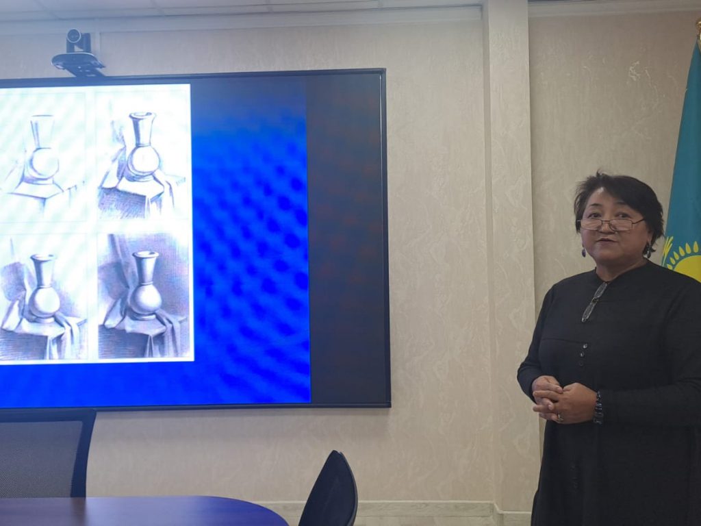 21.10.24.”Сәулет және құрылыс” кафедрасында аға оқытушы Б.А. Кенжеғалиева “интерактивті әдістерді қолдана отырып, практикалық сабақтарда бейнелеу құралдарының экспрессивті мүмкіндіктері”тақырыбында шеберлік сабағын өткізді.