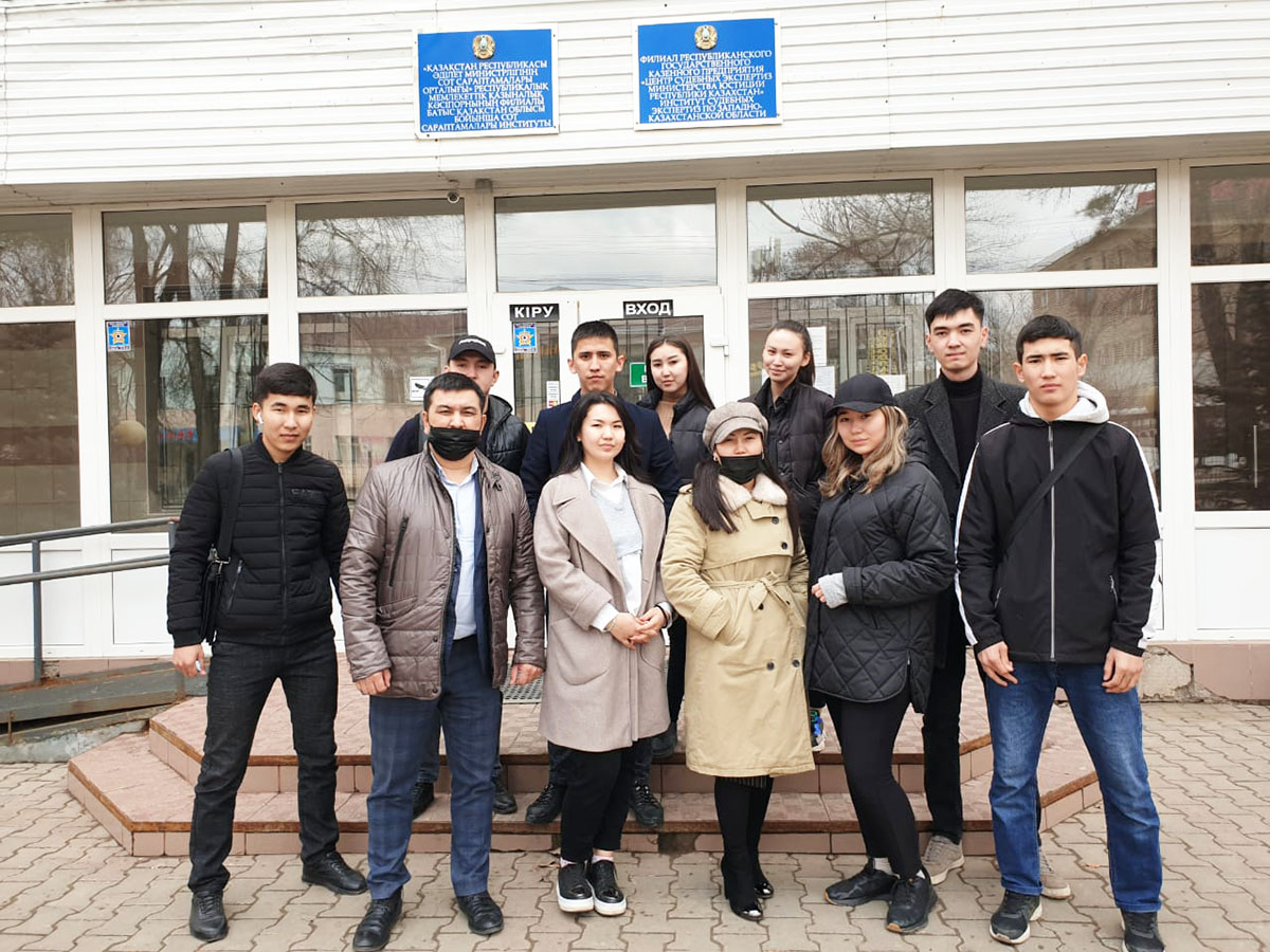2022 жылдың 6 сәуір күні Инженерлік-гуманитарлық факультет 6В04202 «Құқықтану» білім беру бағдарламасы бойынша білім алушы 2, 3 курс студенттері Қазақстан Республикасы Әділет Министірлігінің Сот сараптамалары орталығының филиалы БҚО бойынша Сот сараптамалары институтына экскурсияға барды. Экскурсияны Гуманитарлық және құқықтық пәндер кафедрасының аға оқытушылары Джуламанов С.С және Жансултанова Г.С. ұйымдастырды. Экскурсия мақсаты өндіріс орнымен таныстыру арқылы студенттердің қызығушылығын арттыру болып табылады. Экскурсия барысында студенттерге сот сараптама орталығында жүргізілетін сараптамалар туралы, мәйітті тексеру, өлім себебін анықтау, мәйіттегі дақтар, зақым түрлері деген мәселелерді атап өтті. Сонымен қатар сот сарапшысының атқаратын қызметі және жұмысының барысында басшылыққа алынатын нормативтік құқықтық актілер туралы сөз қозғалды. Жалпы студенттер қызығушылықпен тыңдап, қарап шықты.