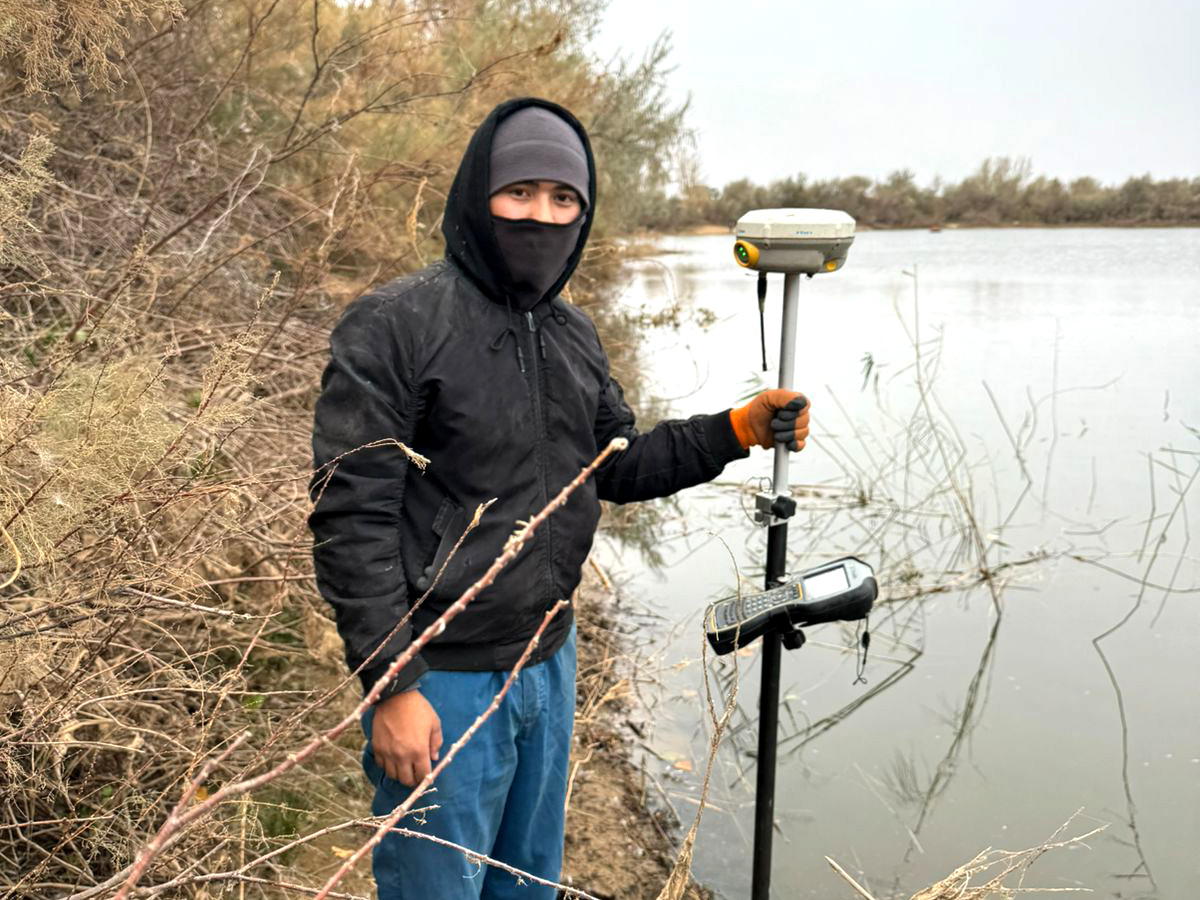 БҚИТУ “Сәулет және құрылыс” кафедрасындағы 6В07303 Жерге орналастыру және кадастр білім беру бағдарламасының білім алушысы Сараузенов Нурдаулет “Уралводпроект” ЖШС шақыруы бойынша “БҚО Ақжайық ауданы Көнеккеткен ауылының маңындағы Солянка өзеніндегі Ақжайық су қоймасын қайта құру жобалық-сметалық құжаттамасын әзірлеуге” қатысты. Тереңдік мысалдарымен бар бөгеттерді түсіру жүзеге асырылды. Түсірілім бөгет бойымен көлденең және Солянка өзенінің тереңдігін қайықпен өлшеу жүргізілді. Студент сабақта алған теориялық дағдыларын көрсетті, тәжірибе E300 Pro спутниктік қабылдағышты (GPS) қолдану арқылы өтті.