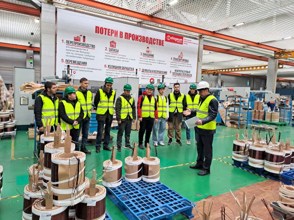 Білім алушылар қауіпсіздік техникасы бойынша жұмыс орнында алғашқы нұсқаулықтан өтті. Өндірістік цехтың директоры Н. Усманов зауыт бойынша шағын экскурсия өткізді, білім алушылар заманауи бәсекеге қабілетті отандық кәсіпорынның пайда болу тарихы мен даму жолдары, шығарылатын өнімдер мен пайдаланылатын жабдықтардың ассортименті, сондай-ақ компанияның жаңа перспективалық технологиялары туралы білді.