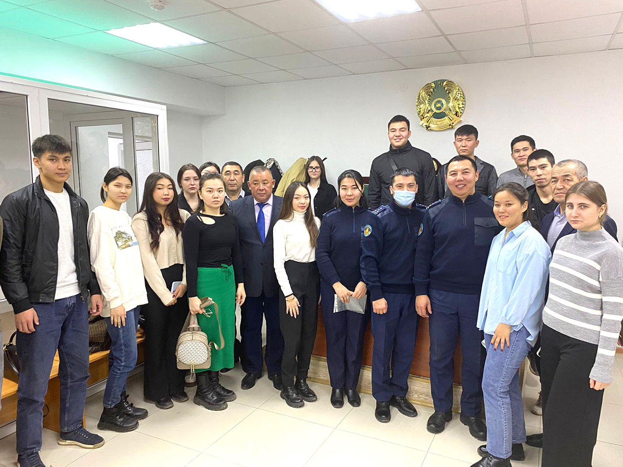 28 қараша күні сағат 11-де БҚИТУ мен ҚР ІІМ БҚО бойынша ҚАЖК қылмыстық-атқару жүйесі департаментінің жасалған ынтымақтастық туралы меморандум аясында 6В04202 Құқықтану, 6В04203 Тасымалдауды, қозғалысты және көлікті пайдалануды құқықтық реттеу және 6В04207 сот-прокурорлық қызмет ББ бойынша білім алушылармен тәжірибеге бағытталған сабақ өткізілді.