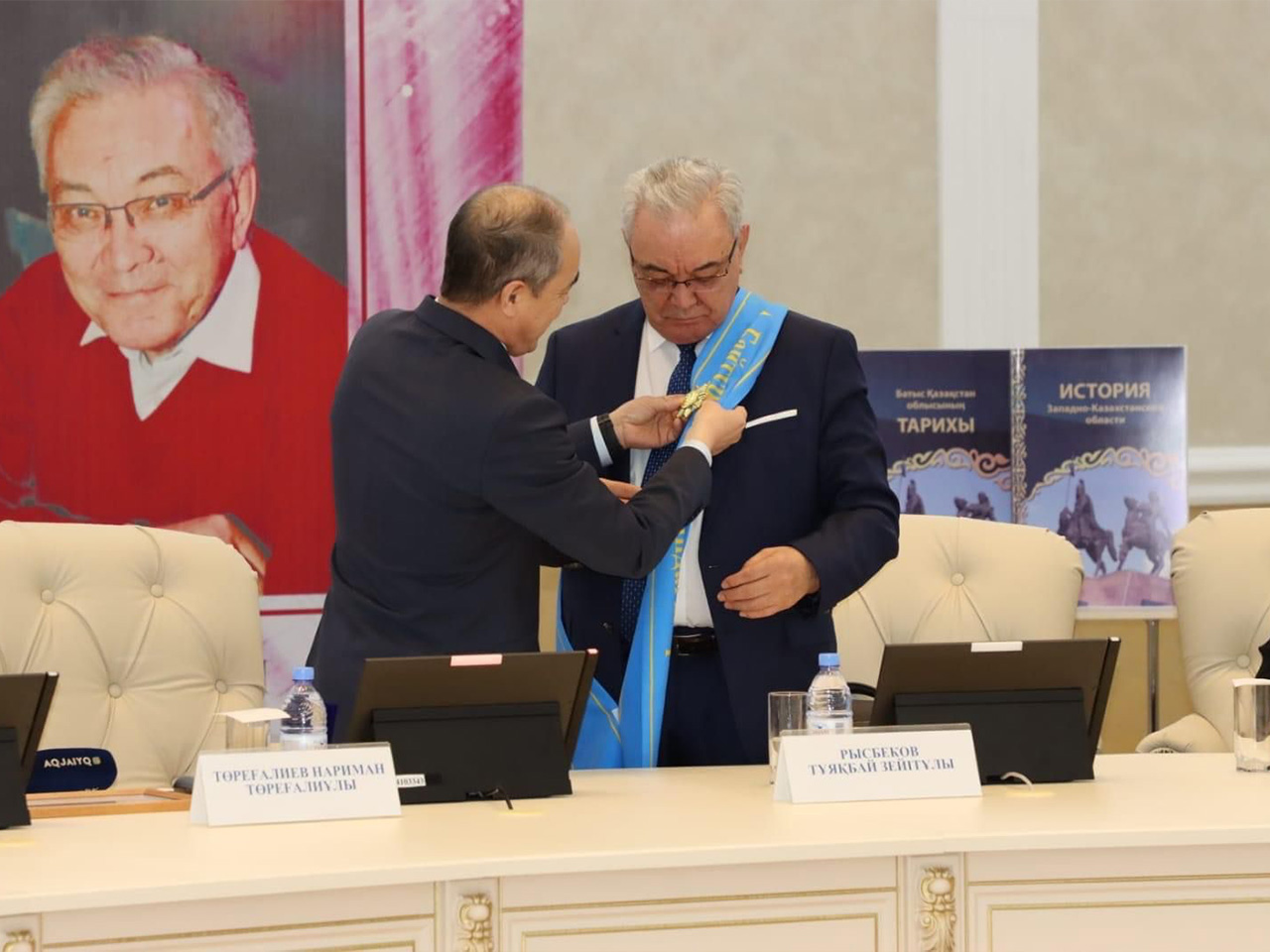 Алғашқы құттықтау сөз кезегін Батыс Қазақстан облысының әкімі Нариман Төреғалиұлы Төреғалиев алып, ғалымның атқарған істерін мақтан етіп атай келе ҚР Жоғары оқу орындары қауымдастығының Ахмет Байтұрсынов атындағы орденін ел тарихына сіңірген еңбегі үшін кеудесіне тақты. Осымен қатар өңір басшысы Нариман Төреғалиұлы профессор Сабыр Мұрат Бөкенбайұлымен бірге жаңа кітаптың тұсаукесер рәсімін жасады.