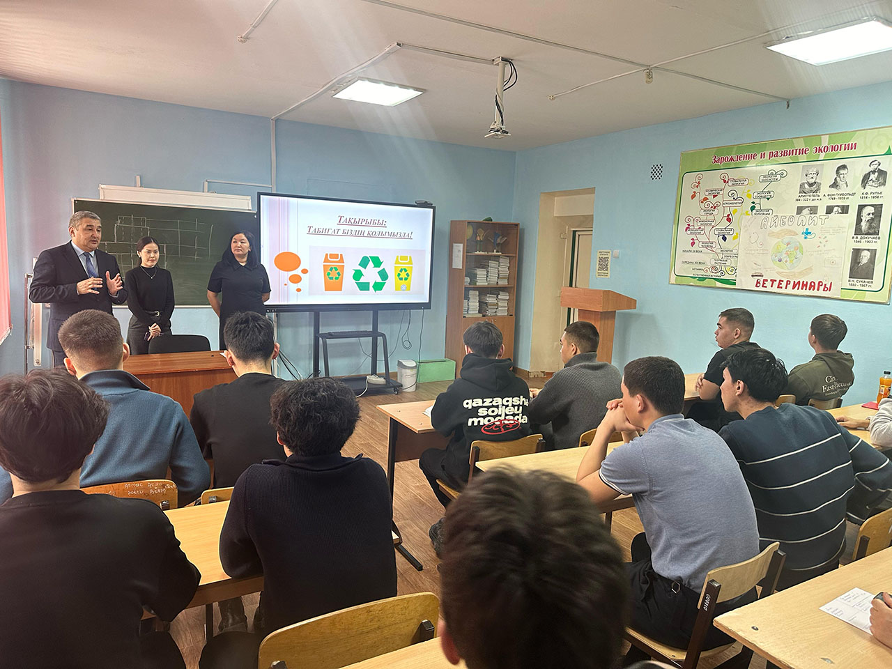 Сонымен қатар, қоршаған ортаны қорғаудың заманауи шаралары талқыланып, білім алушыларға экологиялық сауаттылықты арттыру бойынша ұсыныстар беріліп, табиғаттың тазалығы үшін бірлескен жауапкершіліктің маңыздылығы атап өтілді.