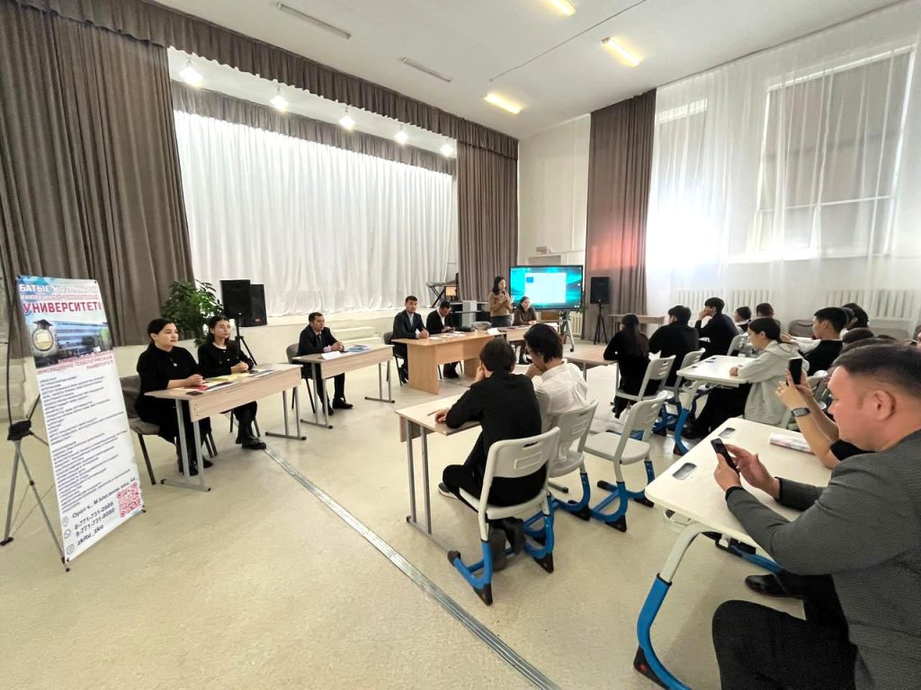 2025 жылдың 24 қаңтарында салалық технологиялар институтының кәсіптік бағдар беру және қабылдау бөлімінің мамандары А.Е. Танжарикова мен А.Т. Махамбетова Батыс Қазақстан облысы, Теректі ауданы, Подстепный ауылындағы «Подстепный жалпы орта білім беретін мектебінің» түлектеріне кәсіптік бағдар беру жұмыстарын жүргізді. Кездесу барысында мектеп бітіруші түлектерге оқу орнындағы білім беру бағдарламалары мен университетке түсу ережелері туралы ақпарат берілді.