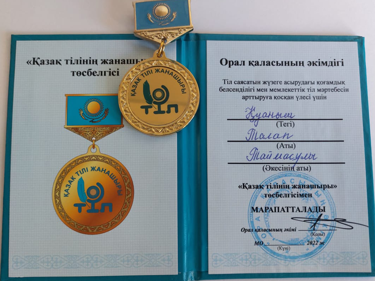 Батыс Қазақстан инновациялық-технологиялық университетінің филология, мәдениет және оқыту әдістемесі кафедрасының профессоры, филология ғылымдарының докторы Сабыр Мұрат Бөкенбайұлы Орал қаласы әкімінің Құрмет грамотасымен, аға оқытушы Қуаныш Талап Таймасұлы Орал қаласының әкімдігі атынан «Қазақ тілінің жанашыры» төсбелгісімен марапатталды.