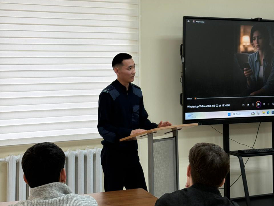ҚР ҒжЖБМ №14-14-2-8/774-И 4-Ақпан 2026 жылғы хатына сәйкес 6В04202-«Құқықтану» білім беру бағдарламасының білім алушыларына арналған «Әйелге құрмет = қоғамның даму деңгейінің көрсеткіші» ұранымен некеге мәжбүрлеу, сталкинг және әйелдерге қатысты өзге де зорлық-зомбылық түрлерінің алдын алу, құқықтық сауаттылықты арттыру және аталған құқық бұзушылықтарға қатысты қоғамда нөлдік төзімділікті қалыптастыру мақсатында ақпараттық-түсіндіру науқаны аясында департамент мамандарымен кездесу өтті.