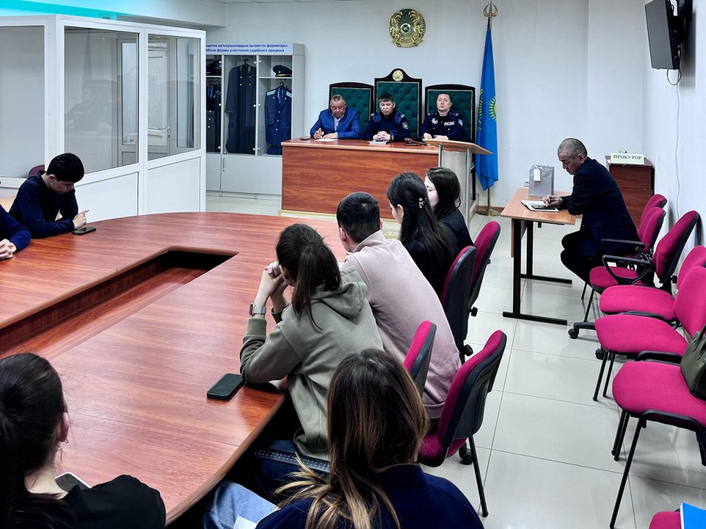 Полиция офицерлері өз сөздерінде білім алушыларға құқық бұзушылықтардың жай-күйі туралы, оның ішінде қызмет көрсетілетін аумақ бойынша кәмелетке толмағандар арасындағы нақты мысалдар келтіре отырып және олардың алдын алу бойынша қабылдап жатырған шаралар туралы егжей-тегжейлі айтып берді. ҚР-ның Әкімшілік құқық бұзушылық және қылмыстық заңнамасында күшіне енген өзгерістер мен толықтырулар туралы және әйелдерге, кәмелетке толмағандарға және отбасылық-тұрмыстық құқық бұзушылықтарға қатысты құқық бұзушылықтар үшін жауапкершілікті күшейту бөлігінде тәжірибеде қолданудың маңызына тоқталды.
