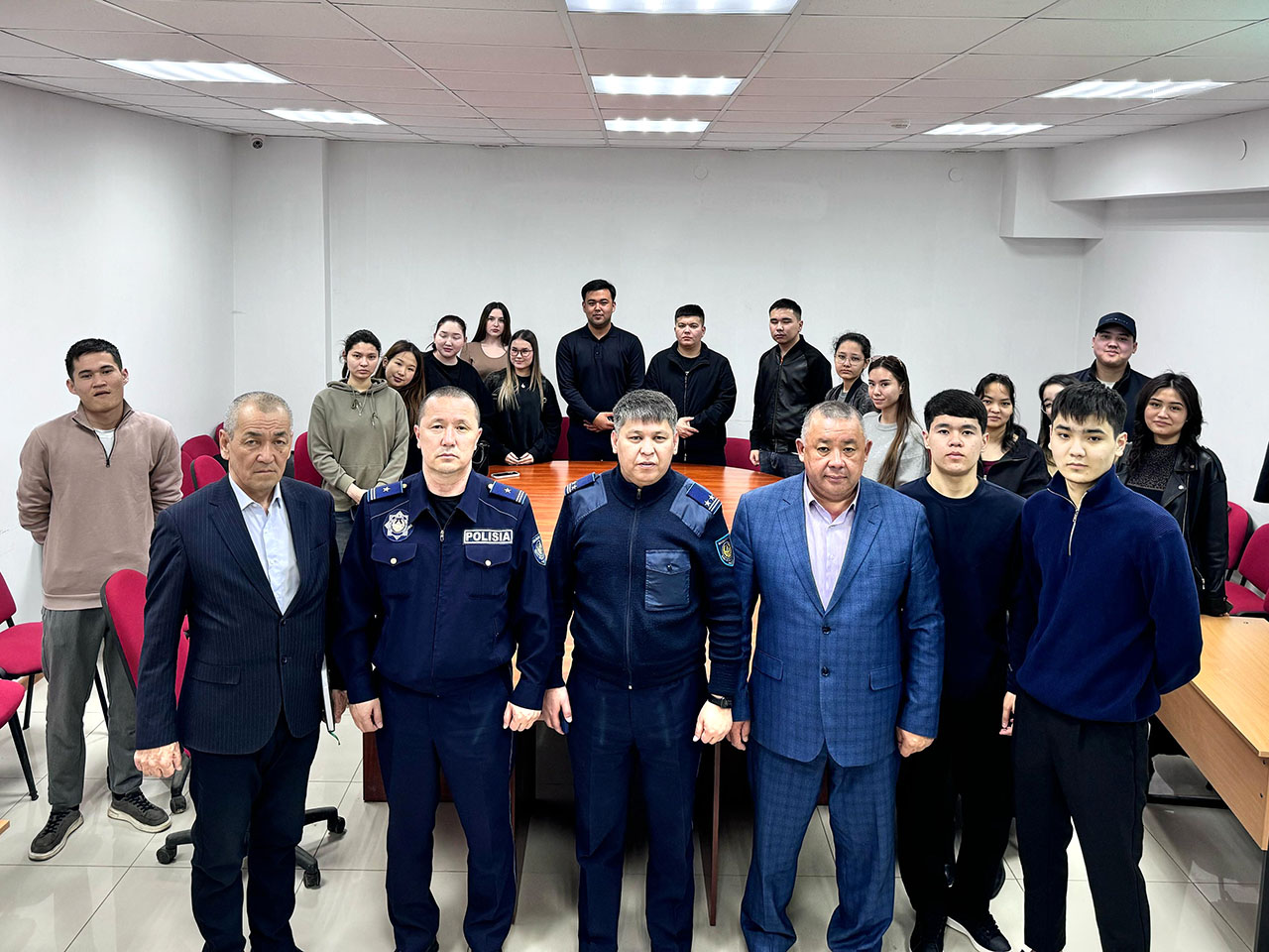 Кездесу соңында қонақтар болашақ заңгерлерді ҚР Президенті Қ.К. Тоқаевтың “Заң және тәртіп” туралы көрсеткен талаптарды белсенді қолдауға, барлық құқық бұзушылықтармен бітіспес күрескер болуға шақырды және студенттердің барлық сұрақтарына жауап бере отырып, оқуда жақсы нітижелерге жетуді тіледі.