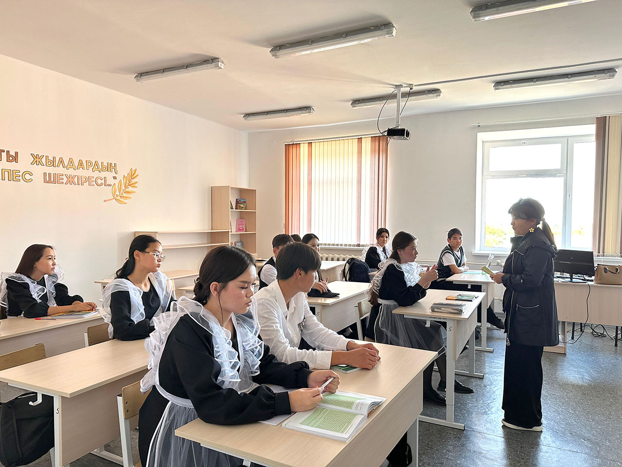 Г.А.Айешева оқушыларды заңгерлік білім алу мүмкіндіктерімен, мамандықтың келешегімен және құқықтану саласындағы мамандардың сұранысымен таныстырды.
