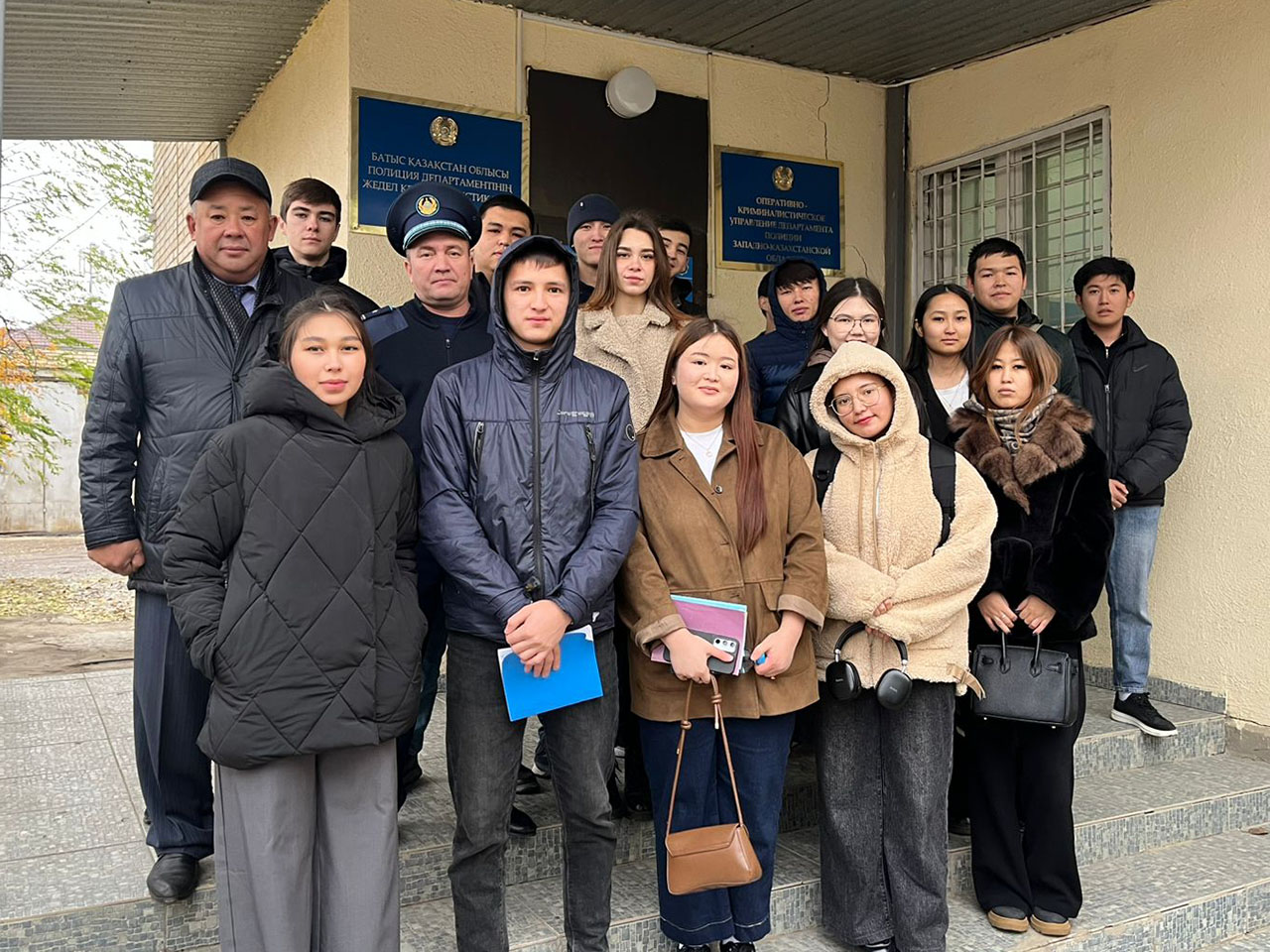 2025 жылғы 7 қараша күні Батыс Қазақстан инновациялық-технологиялық университетінің «Құқық» кафедрасымен Батыс Қазақстан облысы полиция департаментінің арасында жасалған ынтымақтастық туралы Меморандум аясында «6В04202 – Құқықтану» білім беру бағдарламасы бойынша оқитын ЮР-31О, ЮР-32О  және ЮР-33О топ студенттері үшін тәжірибеге бағдарланған сабақ ұйымдастырылды. Сабақ БҚО ПД-нің жедел-криминалистикалық басқармасы базасында өтті.