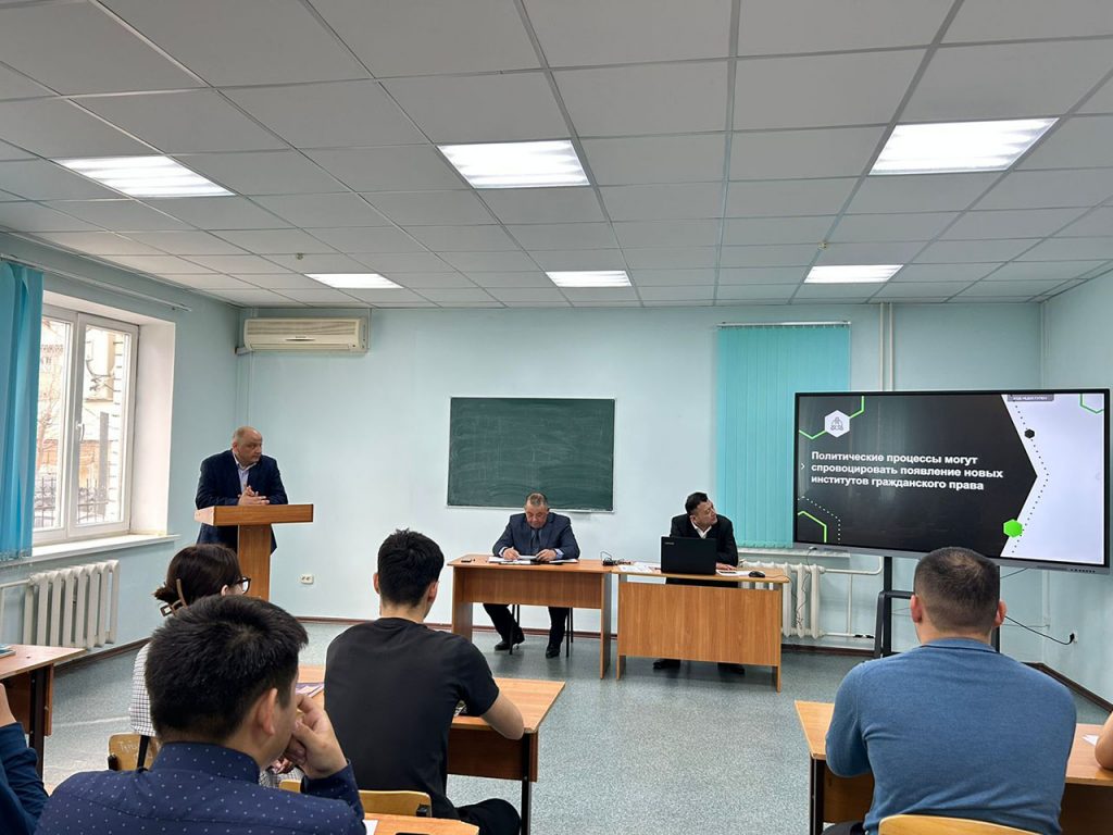 Профессорлық оқытушылар құрамы мен құқық кафедрасының білім алушылары қазіргі әлеуметтік-экономикалық шындықтың нақты мысалдарында Пәнаралық ғылыми тәсілдер мен әдістерді қолдану мәселелерін талқылады, құқықтық ғылымды дамыту саласындағы өзекті мәселелерді шешудің ұсыныстары мен нұсқалары айтылды.