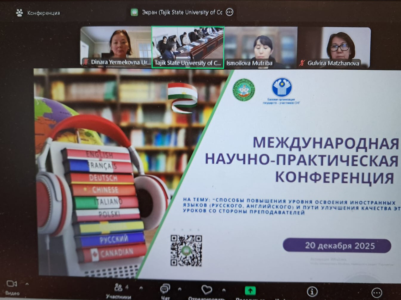 2025 жылғы 20-желтоқсанда Тәжік мемлекеттік сауда университетінің ұйымдастыруымен «Шет тілдерін (орыс және ағылшын) меңгеру деңгейін арттыру жолдары және оқытушылар тарапынан осы сабақтардың сапасын жақсарту тәсілдері» тақырыбында халықаралық ғылыми-тәжірибелік конференция өтті. Іс-шара Батыс Қазақстан инновациялық-технологиялық университетімен арадағы ынтымақтастық аясында ұйымдастырылды.
