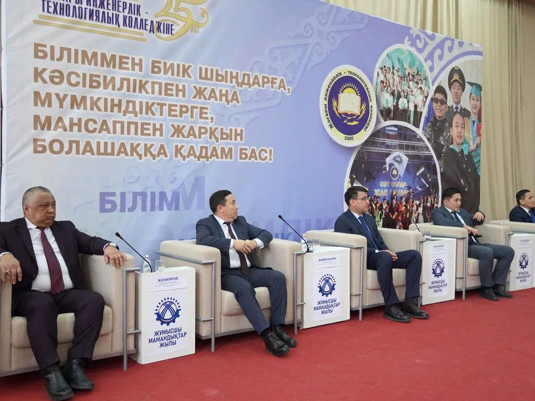 2025 жылдың 24-қаңтар күні Жоғары инженерлік-технологиялық колледжінде Салалық технологиялар институтының кәсіптік бағдар беру және қабылдау бөлімінің жетекші маманы К.К.Жанияров колледж түлектеріне Жұмысшы мамандықтар жылына орай өткізілген «Білім. Мансап. Кәсібилік» тақырыбында өткізілген кездесуге қатысты. Кездесу барысында студенттер жоғары білім саласына қатысты сұрақтарын қойып, жоғары білім алу мүмкіндіктері туралы ақпарат алды.