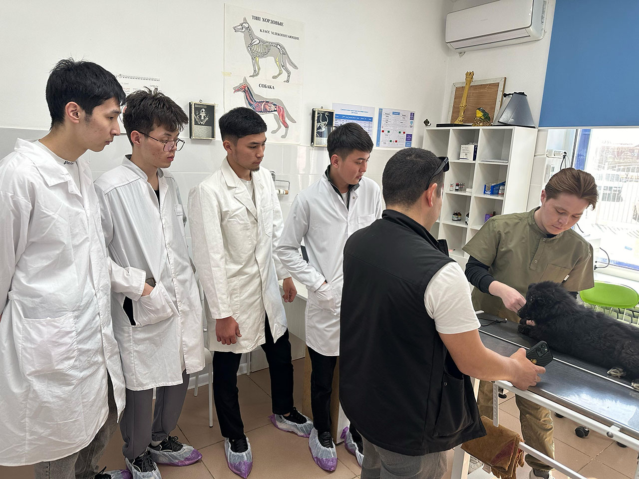 2025 жылғы 15 сәуірде ветеринария және техносфералық қауіпсіздік кафедрасы ZooDoctor ветеринарлық орталығының базасында Ветеринария ББ 2-курс білім алушылары үшін практикаға бағдарланған сабақ ұйымдастырып, өткізді. Практикаға бағдарланған сабақты ZooDoctor ветеринарлық орталығының басшысы М.А. Стромоусов, ветеринария және техносфералық қауіпсіздік кафедрасының профессоры, ветеринария ғылымдарының докторы Е.У. Байтлесов, аға оқытушы Н.О. Абатова өткізді.