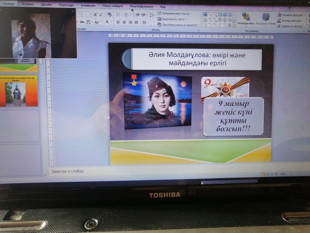 6 мая 2020 года на кафедре «Учет и Финансы» состоялось онлайн-мероприятие в виде кураторского часа, посвященное 75-летию Великой Отчественной войне «Батыр бабалар рухына мәңгілік тағзым». Студентами 1-3 курсов по специальности «Финансы» и куратором Нурмановой А.К. был организован видеофильм, прочитаны стихи и предоставлен презентационный материал.