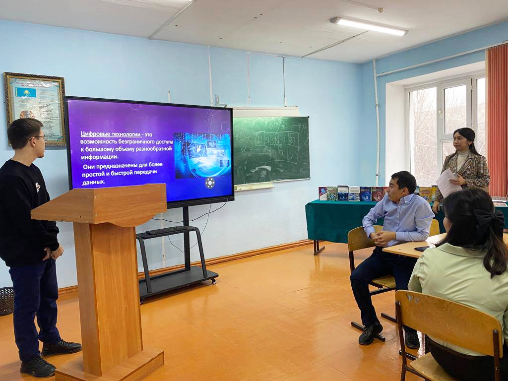 В рамках методической недели 25 ноября 2022 года кафедрой «Энергетика, автоматизация и вычислительная техника» был проведён круглый стол на тему: «Цифровые технологии в образовании», в котором приняли участие студенты 2, 3 курсов инженерно-гуманитарного факультета и преподаватели Кайранбаева А.Б., Шалабаева И.А., Саргужиева Б.А.