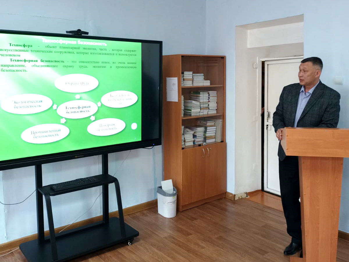 22 апреля 2026 года кафедрой «Ветеринария и техносферная безопасность» для студентов образовательной программы «Безопасность жизнедеятельности и защита окружающей среды» в рамках изучения дисциплины «Основы промышленной и технической безопасности» была организована гостевая лекция на тему: «Техносферная безопасность», которую провел заместитель директора политехнического института по научной работе ЗКАТУ им. Жангир хана, доктор PhD Ибраев А.С. В ходе лекции студенты ознакомились с элементами зашиты производственного персонала и населения не только от последствий чрезвычайных ситуаций техногенного, но и природного характера. Лекция прошла в форме диалога с обучающимися и вызвала у них неподдельный интерес, подтверждением чему является количество заданных вопросов, на которые лектором были даны полные и аргументированные ответы. Коллектив кафедры благодарит своих коллег из ЗКАТУ им Жангир хана за плодотворное сотрудничество.