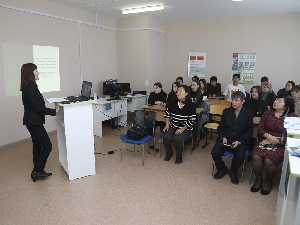 19 октября 2023 года обучающимся ОП «Финансы» была проведена лекция на тему «Правила осуществления экспортно-импортного валютного контроля в Республике Казахстан» главного специалиста-экономиста отдела контроля валютных операций филиала по ЗКО Национального банка РК Иргалиевой Жанны Талгатовны. На лекции были подробно описаны цели и задачи, функции Национального Банка Республики Казахстан, в том числе сведения о валютных операциях и мерах регулирования, раскрыта и разъяснена деятельность Национального банка по валютному регулированию и валютному контролю. Студенты с интересом слушали лекцию, задавали вопросы и получили ответы.