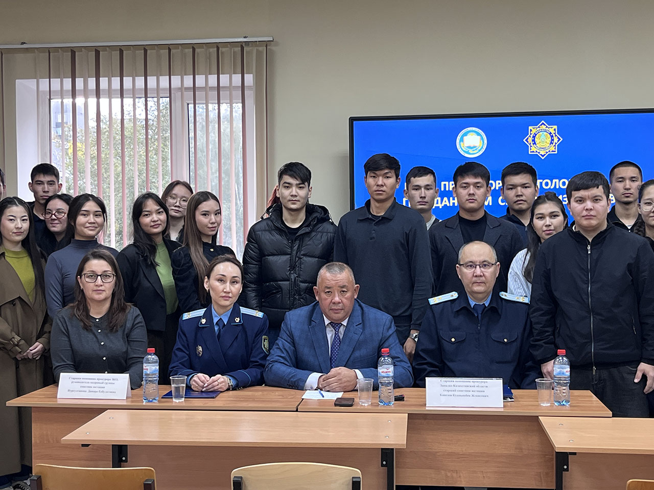 17  октября по плану работы кафедры Права в рамках заключенного Меморандума о сотрудничестве между ЗКИТУ и Прокуратурой Западно-Казахстанской области для обучающихся 2,3 и 4 курсов по 6В04202 ОП Юриспруденция   состоялась гостевая лекция на тему «Прокурорский надзор в уголовном и гражданском судопроизводстве» старших помощников прокурора по ЗКО старшего советника юстиции Капезова К.Ж и руководителя кадровой службы, советника юстиции  Нурсултановой Д.Е.