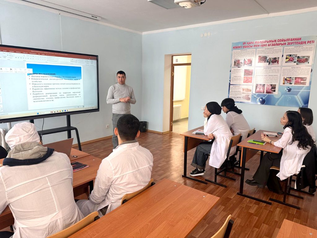 10 февраля 2026 года по инициативе кафедры ветеринарии и техносферной безопасности для студентов образовательной программы 6В09103 «Ветеринария» была организована гостевая лекция по дисциплине «Ветеринарная фармакология и токсикология». В качестве приглашённого лектора выступил доцент, к.ф.н., PhD Габдуллин Досмукан Ермуканович, представляющий Институт ветеринарии и агротехнологий Западно-Казахстанского аграрно-технического университета имени Жангир Хана.