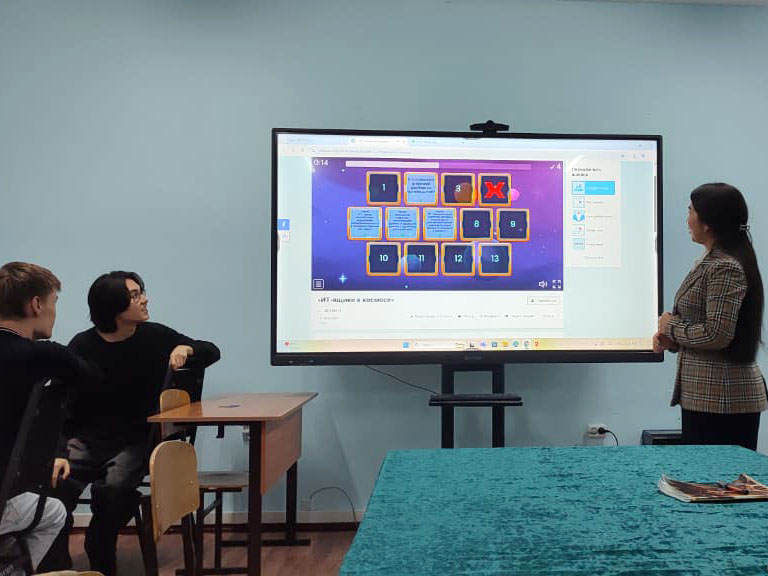В заключительной части занятия на платформе Wordwall был использован интерактивный метод «IT-ящики в космосе», в рамках которого обучающиеся выбирали карточку с вопросом и определяли правильный вариант ответа.