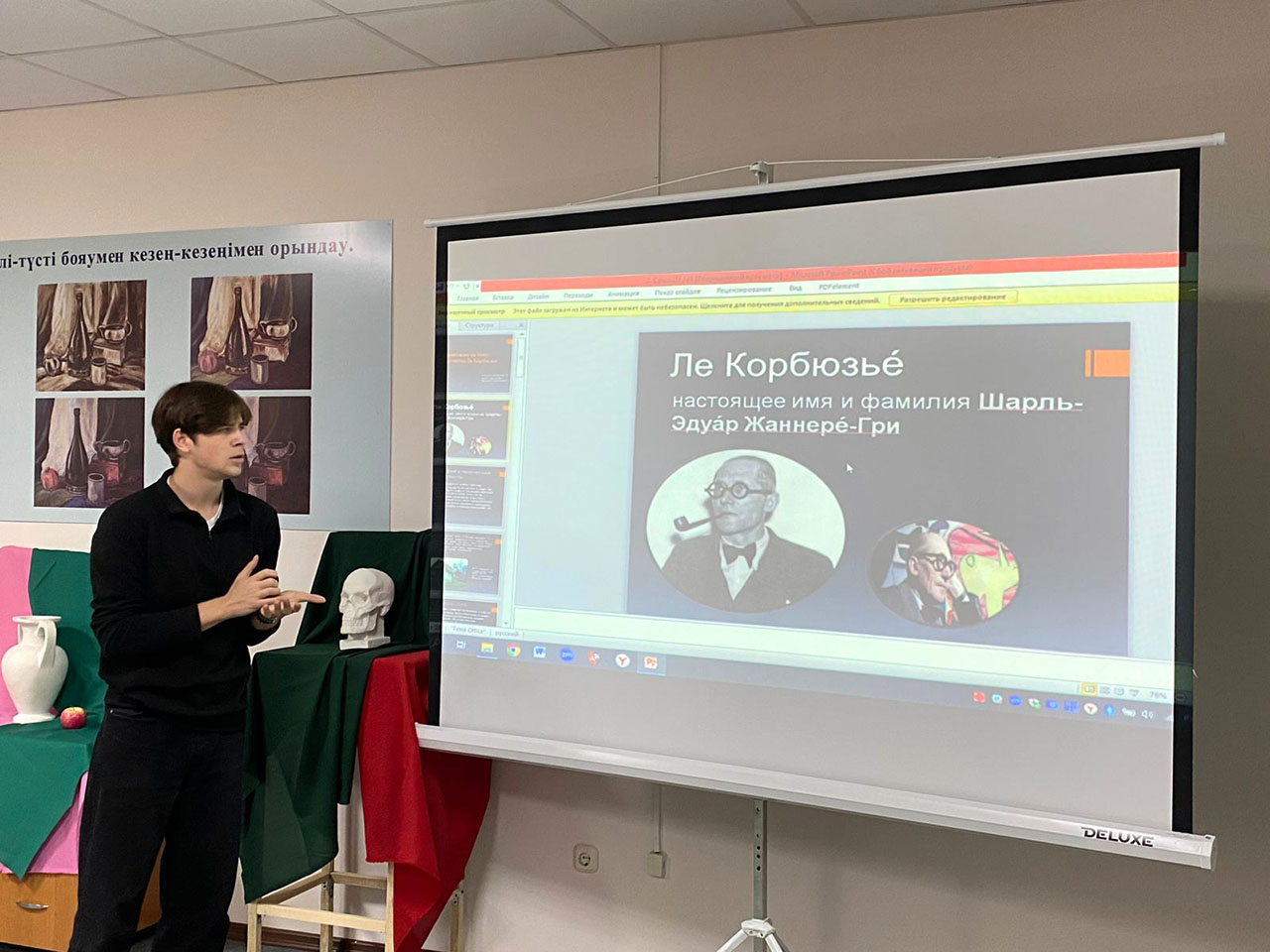 На кафедре « Архитектура и строительство », старшим преподавателем Кенжегалиевой Б.А. 13.12.24. было проведено мероприятия по творчеству выдающихся архитекторов ХХ века.
