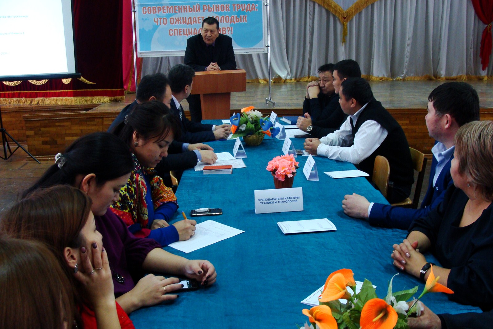 Затем выступил заведующий кафедрой техники и технологии доцент Ихсанов К.А., который в своем выступлении рассказал о кафедре и студентах, затронул вопросы взаимосвязи предприятий и организаций с университетом по учебному процессу.