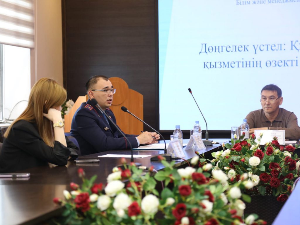 18 апреля 2024 года в Западно-Казахстанском инновационно технологическом университети состоялся круглый стол на тему: «Актуальные вопросы правоохранительной деятельности» с участием преподавателей кафедры общественных дисциплин и физической культуры и представителей правоохранительных органов.