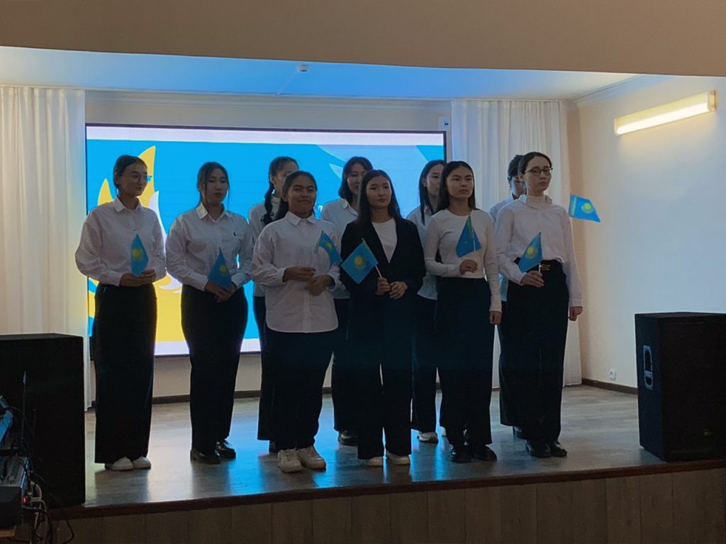 В воспитательном мероприятии прозвучали патриотические песни, терме, стихотворения, народные танцы. В мероприятии приняли участие студенты ПД-111,311, ИЯ-111, КДР-111,311, ПИМНО-111, ПС-111. Подвела итоги праздничного мероприятия заведующая кафедрой Д.Ж.Кусаинова.