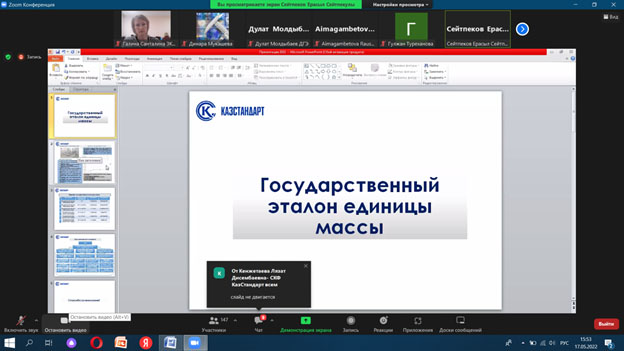 17 мая 2022 года студенты 1, 2 курсов кафедры экологии и биотехнологии ИГФ ЗКИТУ образовательной программы 6В07501 «Стандартизация и сертификация» приняли участие в семинаре, посвященный Всемирному Дню метрологии. Семинар организован совместно с Казахстанским институтом стандартизации и метрологии («КазСтандарт»). Цель семинара – расширение кругозора студентов, ознакомление с наукой «Метрология».
