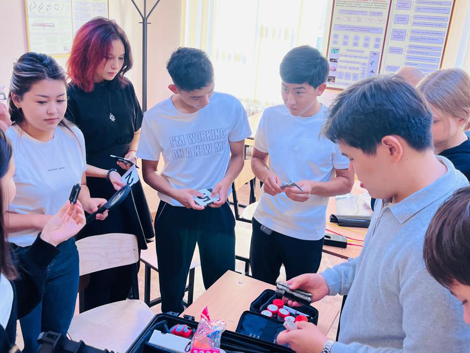 Во время встречи студенты не только ознакомились с устройствами, но и получили возможность попробовать себя в роли криминалистов: работать с дактилоскопическими наборами, применять порошки для выявления отпечатков, фиксировать пылевые следы при помощи электростатического прибора.