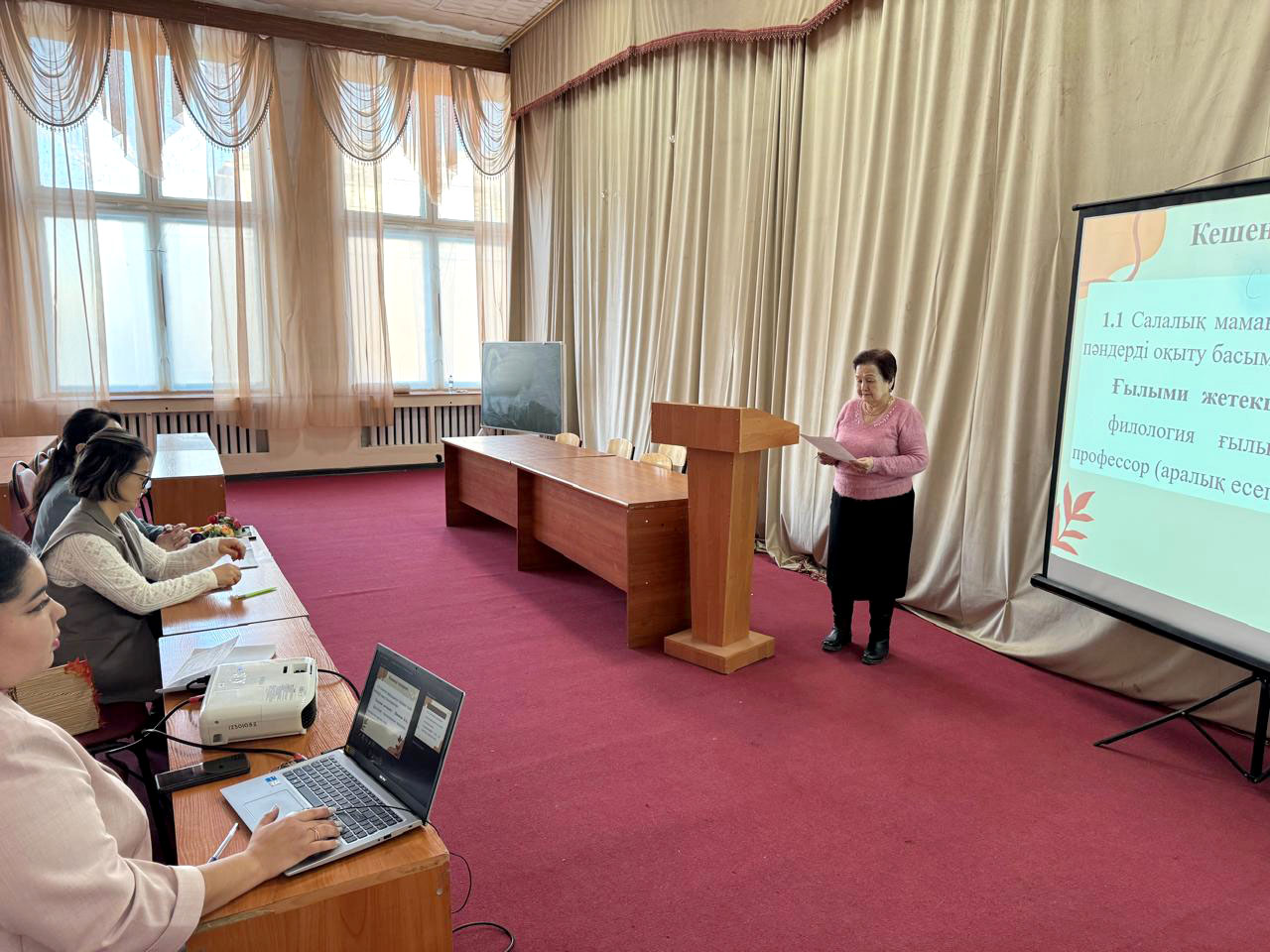 Представлено: ккомплексная тема «Салалық мамандықтар бойынша тілдік пәндерді оқыту басымдықтары». Научный руководитель Шканова Б.А., к.ф.н., профессор.