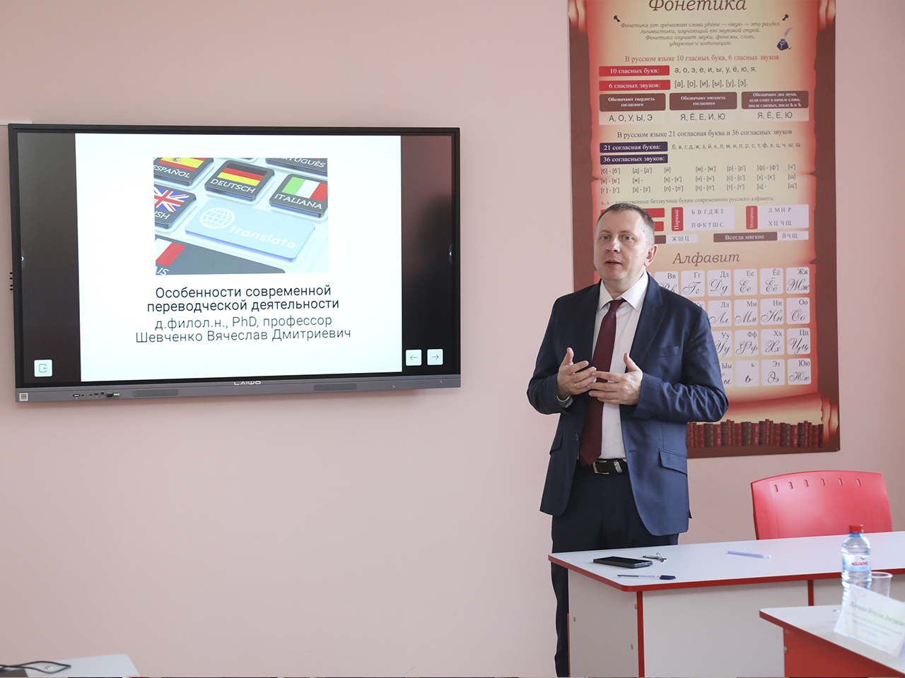 Доктор филологических наук, PhD., заведующий кафедрой английской филологии Самарского национального исследовательского университета имени С.П. Королева Шевченко Вячеслав Дмитриевич представил курс лекций на тему «Лексикология английского языка», отличающийся научной глубиной и увлекательной подачей материала.