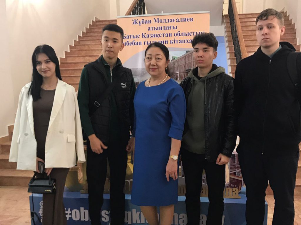 Далее ребятам рассказали автобиографию Л.И.Губановой, первого директора областной библиотеки им. Н. Крупской (ныне Ж. Молдагалиева). Приятный момент вызвал тот факт, что студентам представилась возможность получить книги в подарок от фонда крупнейшей библиотеки в Западно-Казахстанской области.