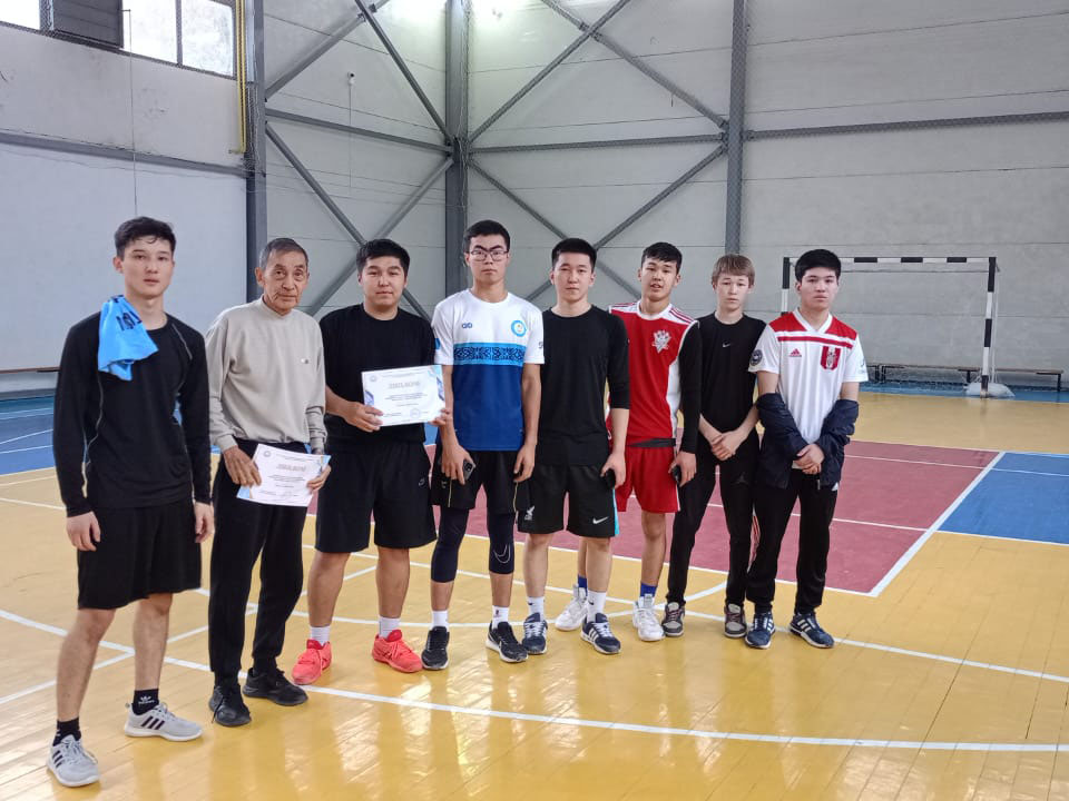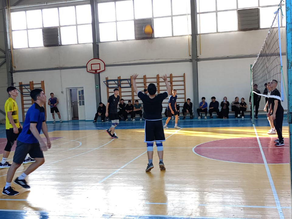 Волейбо́л (англ. volleyball от volley — «удар с лёту» и ball — «мяч») — вид спорта, командная спортивная игра, в процессе которой две команды соревнуются на специальной площадке, разделённой сеткой, стремясь направить мяч на сторону соперника таким образом, чтобы он приземлился на площадке противника (добить до пола), либо чтобы игрок защищающейся команды допустил ошибку. Согласно плану работы кафедры 3 ноября 2025 года старшими преподавателями кафедры общеобразовательных дисциплин Шалаевым Б.Б., Утебалиевым М.М. организовано и проведено Первенство по волейболу среди обучающихся 1-3 курсов института отраслевых технологий.Девятькоманд боролись за призовое место.