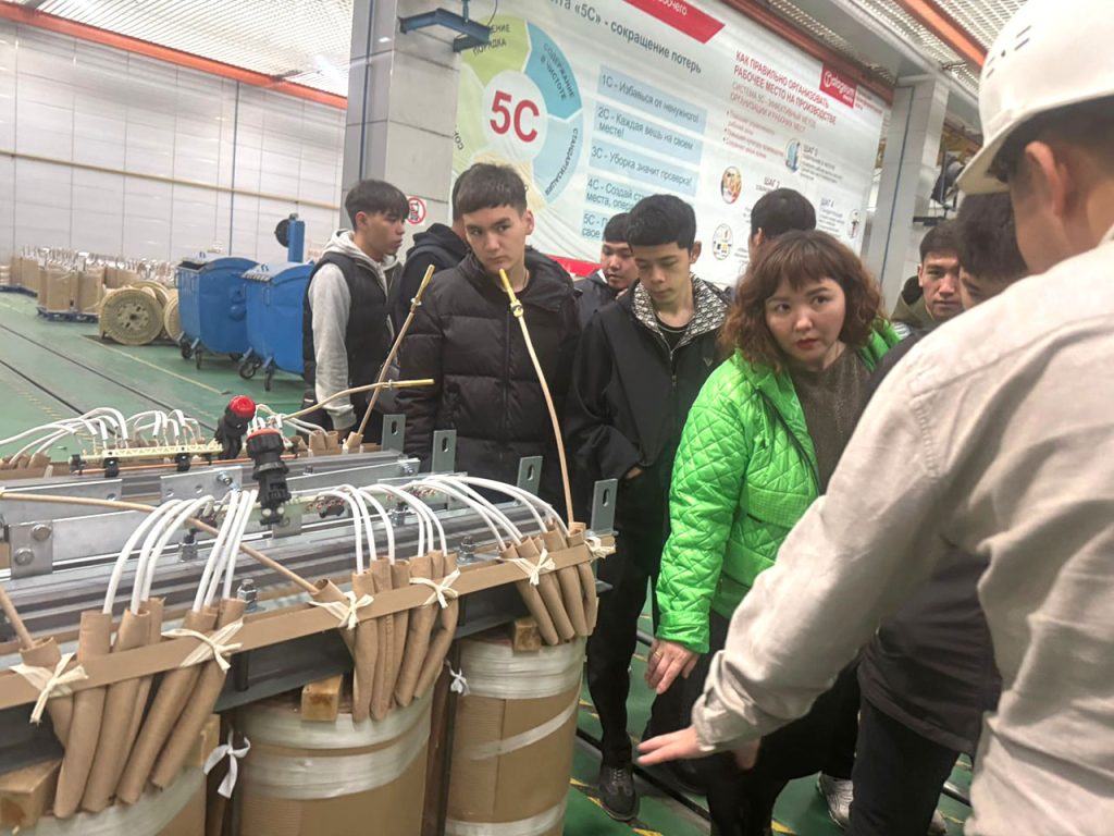 Старшие преподаватели кафедры «Энергетика, автоматизация и вычислительная техника» Института отраслевых технологий Буранова Н.Г. и Абдрахманова Г.Т. организовали для обучающихся 3 курса ОП 6В017102 — «Электроэнергетика» и 6В07105 — Автоматизация и управления (по отраслям) практическое занятие по дисциплинам «Электрические машины» и «Электрические машины и электропривод» на Уральском трансформаторном заводе. Обучающихся и преподавателей приветствовал директор по производству Испанов Ә.Е. Инженер по технике безопасности ознакомил обучающихся и преподавателей с правилами безопасности на заводе.