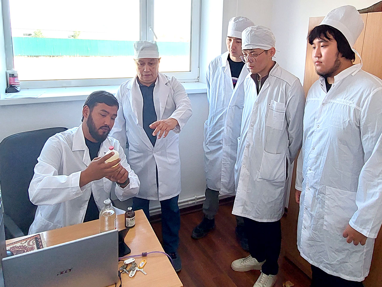 Практико-ориентированное занятие проводил главный ветеринарный врач предприятия Ғани Айдар Асқарұлы и ассоц. профессор кафедры ветеринарии и техносферной безопасности, к.в.н. Аманжол Кусаинович Днекешев. Во время занятия студенты изучили весь технологический процесс на пункте забоя животных и были ознакомлены с топографической анатомией лимфатических узлов и других анатомических образовании наглядно на тушах разных видов животных. Ветеринарный специалист данного предприятия на животных наглядно показал границы топографических областей, оперативные рациональные методы разрезов при оказании хирургической помощи. Вторая часть занятия прошла в специализированном учебном классе, оборудованном муляжами, анатомическими стендами и макетами. Здесь студенты отработали навыки по определению топографии органов, разметке хирургических доступов и отработке элементов наложения швов на учебных моделях, что способствовало развитию практических компетенций.