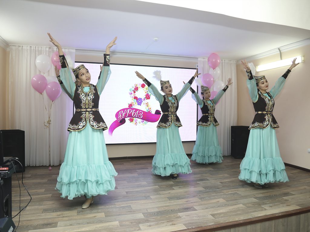 В преддверии Международного женского дня 8 марта преподаватели-мужчины института образования и менеджмента организовали праздничный концерт «Нәзік жанды арулар!» для преподавателей, сотрудников и студентов университета.