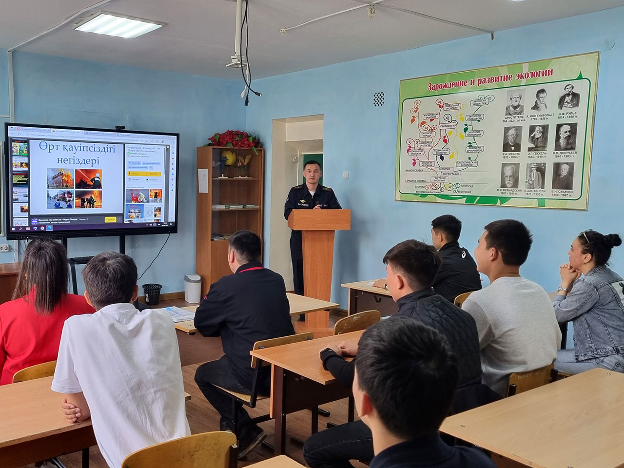 Согласно плану на ИГФ ЗКИТУ приглашен заместитель оперативного дежурного ГУ «Служба пожаротушения и аварийно-спасательных работ» Департамент по ЧС ЗКО МЧС РК, майор гражданской защиты Кабдолов Жарас Жумагельдиевич, который прочитал интересную лекцию по Основам безопасности жизнедеятельности и пожарной безопасности для студентов 1 курса ОП 6В11201-«Безопасность жизнедеятельности и защита окружающей среды»