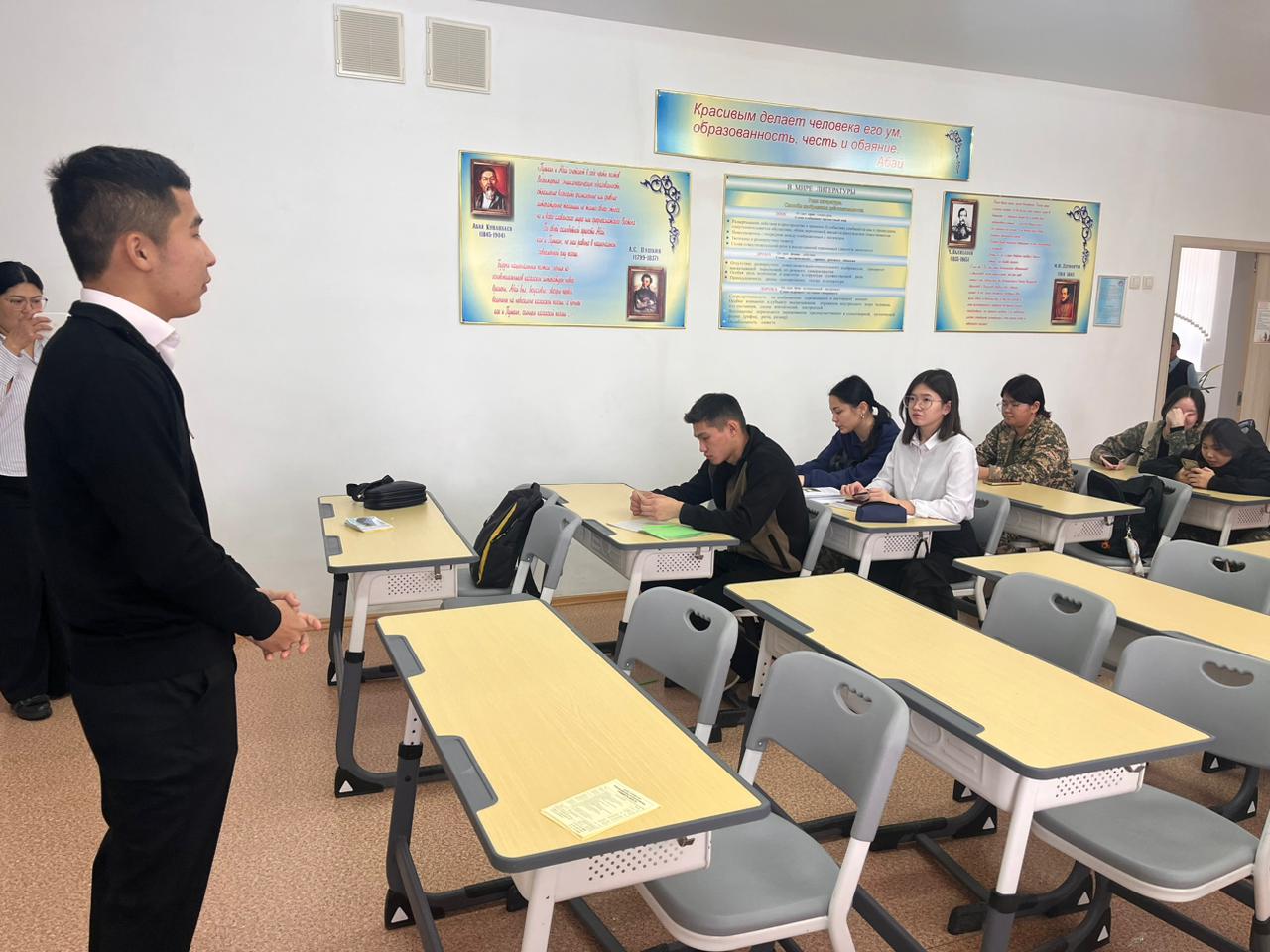 В своем выступлении студент группы ЮР-43 Буркитбаев Улан отметил о возможности прохождения стажировки наших студентов за рубежом в рамках международного сотрудничества университета с зарубежными ВУЗами, информировал о работе организации студенческого самоуправления.