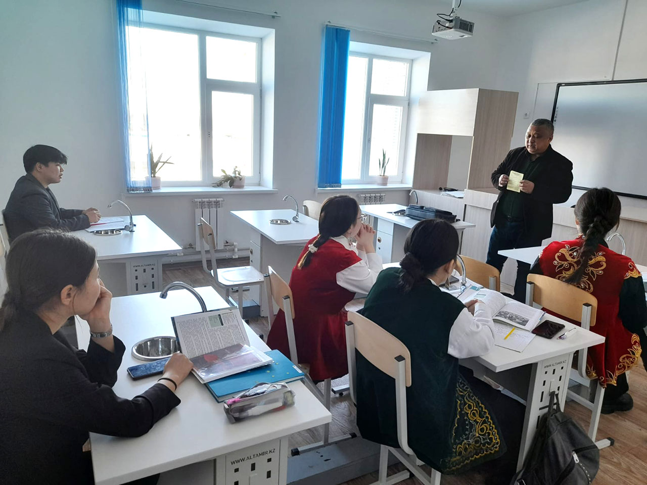 В ходе встречи ведущий специалист отдела профориентационной работы и приема Жанияров Кабибулла Кенжеевич и специалист отдела профориентационной работы и приема Алдонгаров Болатбек Райханович рассказали выпускникам школы о преимуществах обучения в ЗКИТУ, условиях поступления в вуз.