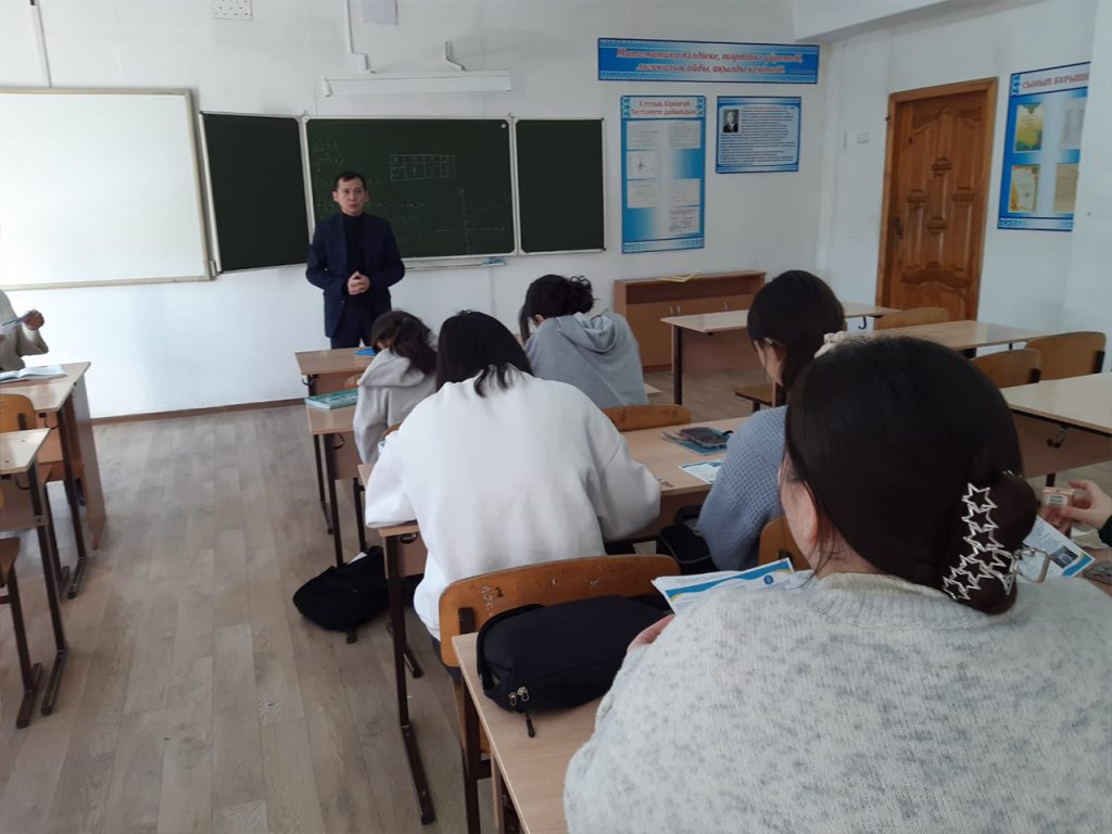 16 февраля 2024 года специалистом отдела профориентации института образования и менеджмента ЗКИТУ Р.С. Ислямовым проведена профориентационная работа с выпускниками 11 класса СОШ № 26. В 2023-2024 учебном году количество выпускников составило — 36 учащийся (9 учащихся казахского класса, 27 учащихся русского класса). В ходе мероприятия выпускникам сообщена информация об итогах январского ЕНТ: