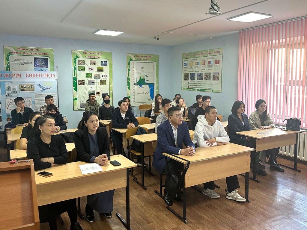 В соответствии с программой мероприятия «Декада науки-2024» 4 апреля 2024 года Института отраслевых технологий ЗКИТУ, приуроченного ко «Дню работников науки» в Казахстане, кафедрой ветеринарии и техносферной безопасности организована встреча обучающихся ОП 6В09103 «Ветеринария», 6В09101 «Ветеринарная медицина» доктором биологических наук, профессором Канатбаевым С.Г. В ходе встречи профессор Серик Ганиевич поделился с обучающимися своим видением и научным опытом по теме: «Путь к науке». В формате презентации рассказал и продемонстрировал обучающимся этапы становления своей научно-педагогической деятельности. Профессор подробно рассказал о своей биографии, о том, где получил образование, как пришел в науку и о своих научных достижениях.