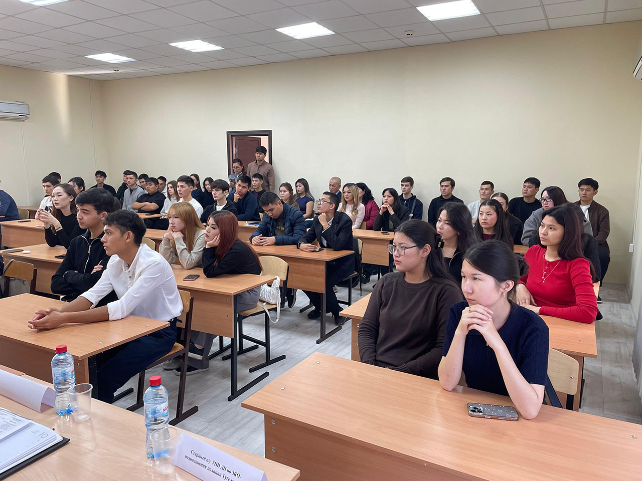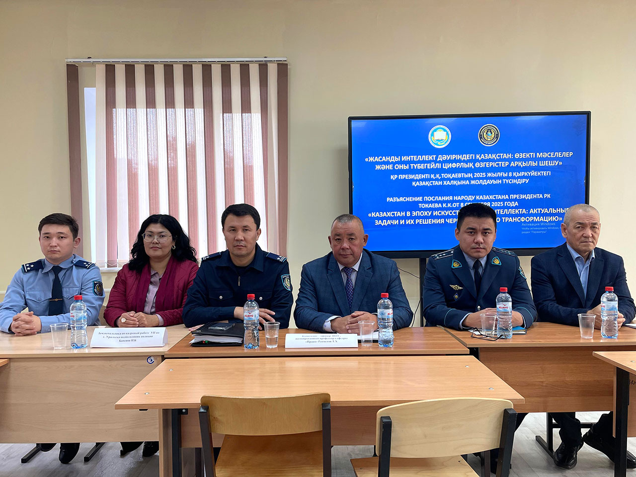 15 октября 2025 г в рамках меморандума о сотрудничестве между ЗКИТУ и Департаментом полиции по ЗКО в новой большой аудитории №7 на кафедре Права ИОТ, расположенной в учебном корпусе по адресу ул. Победы 137/1 состоялась встреча сотрудников полиции с обучающимися 2,3 и 4-х курсов по ОП -6В04202 Юриспруденция и ППС кафедры по разъяснению Послания Народу Казахстана Президента РК Токаева К.К «Казахстан в эпоху искусственного интеллекта; актуальные задачи и их решения через цифровую трансформацию» от 8 сентября т.г. в части разъяснения и выполнения всеми гражданами Республики Казахстан концепции «Закон и порядок» .
